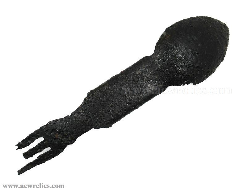 This example is in excavated condition, and it’s been coated for preservation. The tips of the fork tines are missing while the rest is intact. This would make an excellent addition to any excavated mess gear collection!