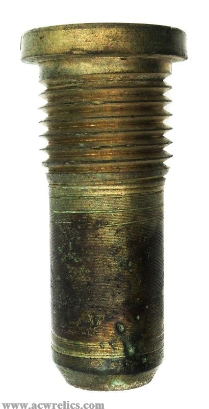 This is an excellent excavated example with a clear name and patent date on the top. The patent date is incorrect and should have been October 15th which was the actual day the patent was awarded. The safety screw may have snapped off. The head of the screw is missing. The threads are crisp, and this one still has some original brass shine to it. An early recovery!