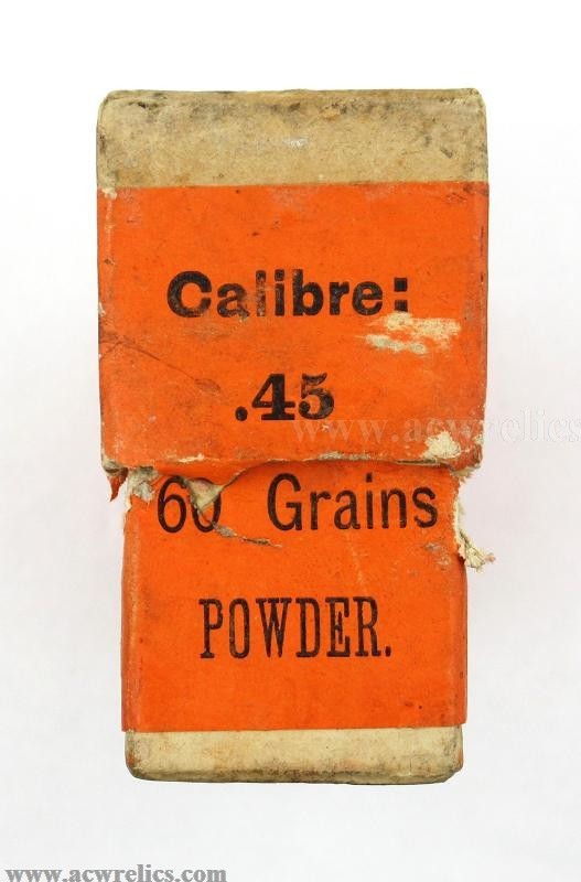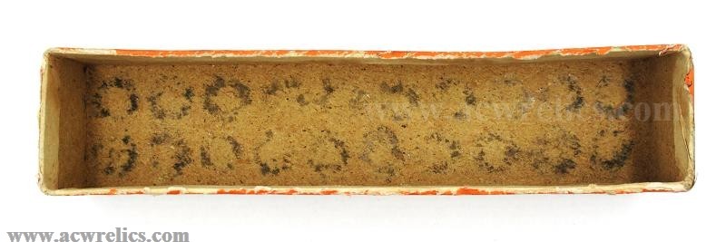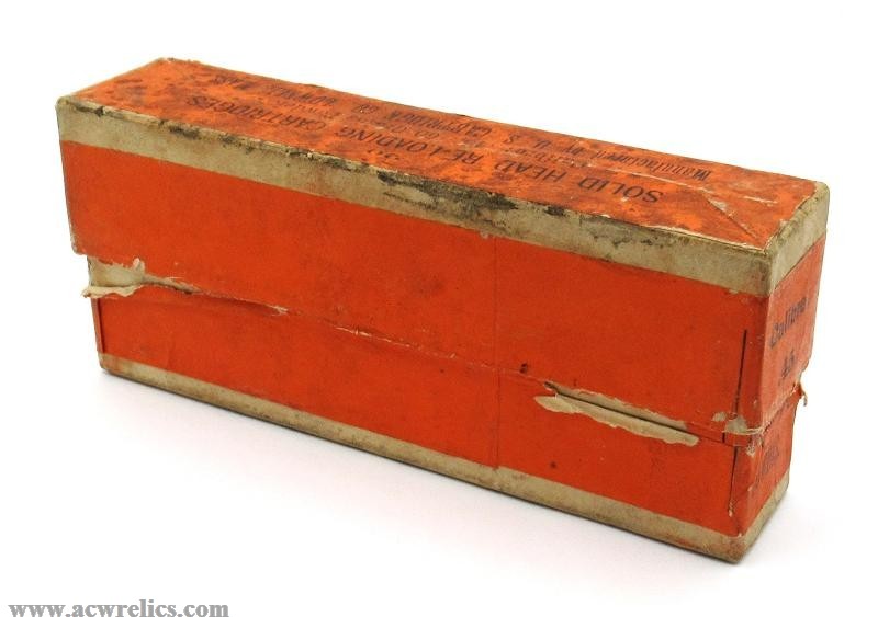 Description: A fine original two-piece empty box that once held twenty .45-60 solid head reloading cartridges, manufactured by the United States Cartridge Company (U.S.C.Co.) of Lowell, Massachusetts. The box remains structurally sound and still includes its original interior divider.