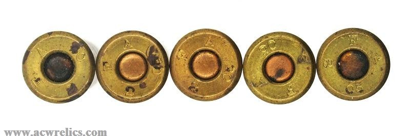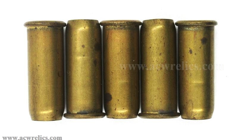 This is the straight-case variant, featuring a roll crimp securing a lacquered cup. The cases are brass with copper primers and a single case cannelure. In 1900, Frankford Arsenal transitioned from black powder to smokeless powder for this type of cartridge. Eventually, the cases were necked down to increase the report upon firing.