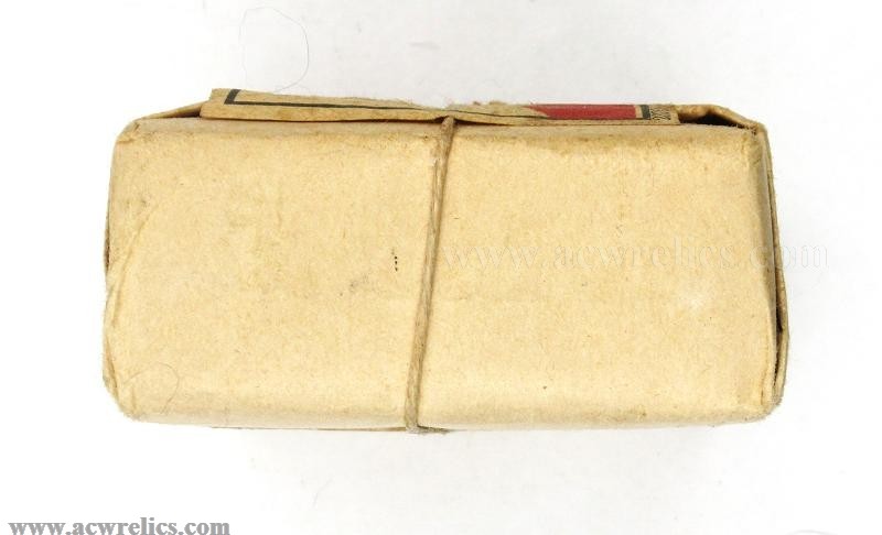 The original label is intact and legible with only a few small nips and a few missing pieces. The packet is dated 1942. The dark red crossbar on the label is marked "PC 89,” indicating the use of PC 89 powder — a semi-smokeless propellant first introduced around 1889–1890. Something was written on the reverse in blue ink at some point.