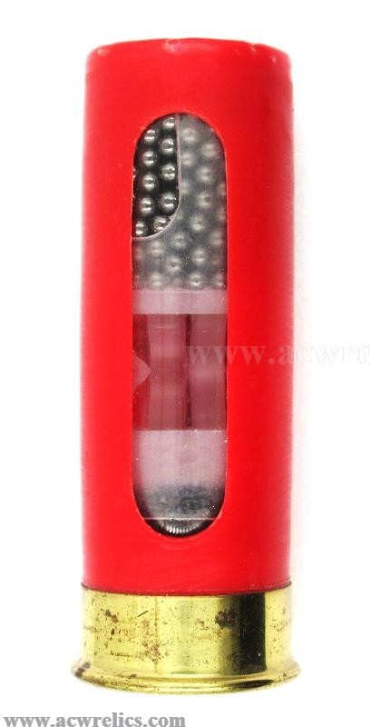 Description: Nice 12-gauge salesman sample "window” shotshell. This example highlights the Winchester–Western Double A (AA) line, first introduced in the 1965 catalog and promoted as "the strongest shotshell ever made.” These shells featured compression-formed polyethylene cases with a tensile strength of 35,000 PSI, a solid head, and the innovative Double A wad. The transparent cutaway clearly displays all internal components.
