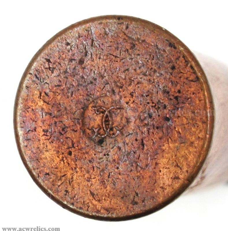 This French commercial example features a flat-nosed lead bullet with three grooves, crimped into a necked copper case. The base is stamped with the intertwined, back-to-back "GG” monogram — the trademark of Société Française des Munitions (SFM) of Paris, France, referencing the legacy of the former Gévelot & Gaupillat establishments.
