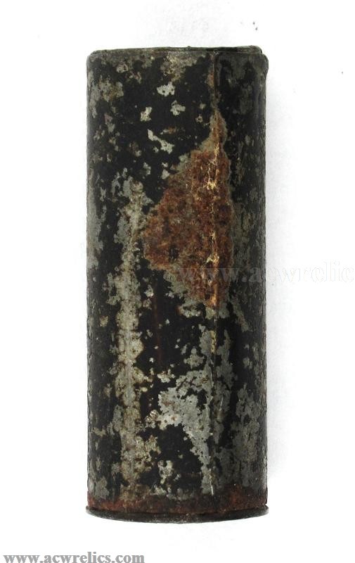 The tube’s ends are each capped with a small tin disk and sealed with wax or varnish, which kept the charge dry and protected from the elements. When needed the shooter would remove the cap, pour the powder into the muzzle or pan, then ram the ball home. I’ve seen these in several lengths, so some were likely intended for pistols while longer examples may have served hunting rifles. These were typically single-use and often discarded after firing, which makes surviving examples uncommon.