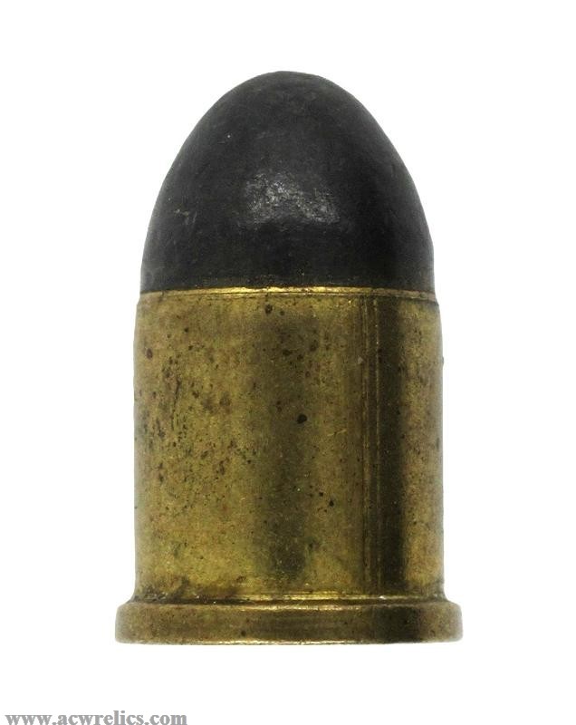 This specimen features a round nose lead bullet roll-crimped into a brass case. Although it closely resembles a rimfire configuration in outward appearance, it is in fact an internally primed centerfire cartridge. The construction is typical of early French proprietary ammunition produced for specialized defensive arms.