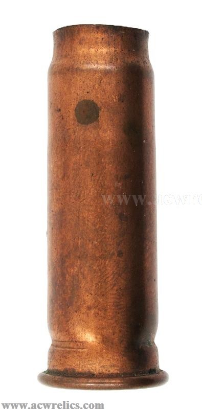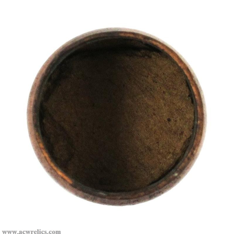 The powder charge is held in place by a wad positioned approximately .422” below the case mouth. The copper case is cylindrically throated and exhibits a distinct neck at the case mouth, adding to its atypical appearance. Overall, this is an oddball blank that does not neatly conform to standard known examples. It is worth noting that a shot cartridge produced by U.S.C.Co. displays a somewhat similar neck configuration, making this an interesting and somewhat enigmatic variant.