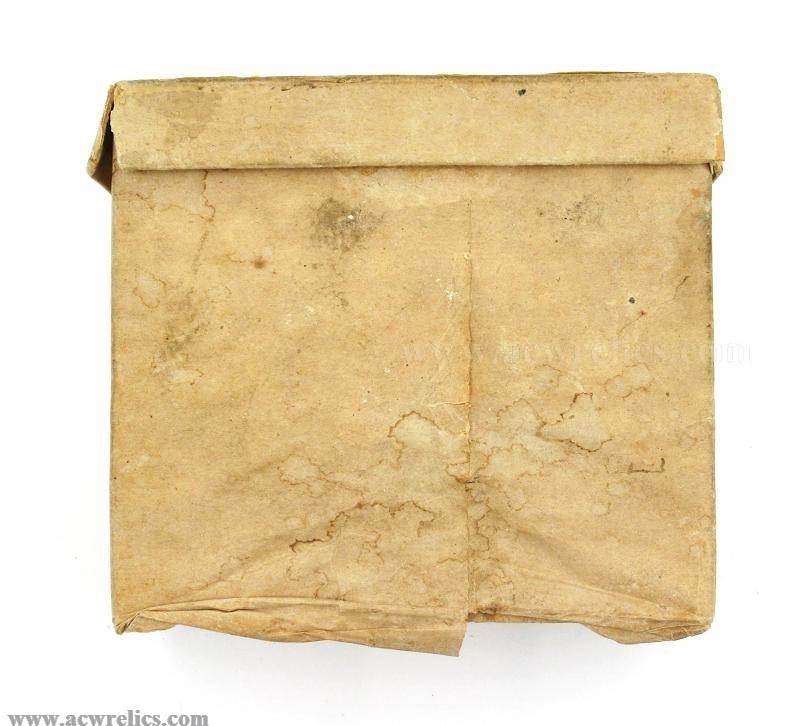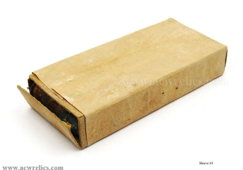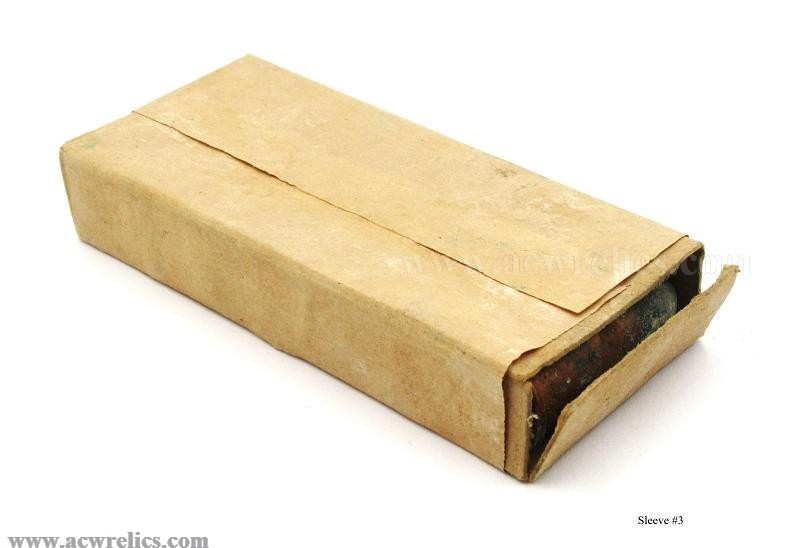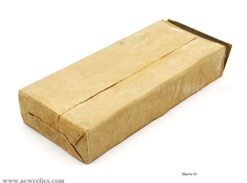 Sleeve #3: Full and correct pasteboard sleeve with wrapper. One end is partially opened, the other sealed.