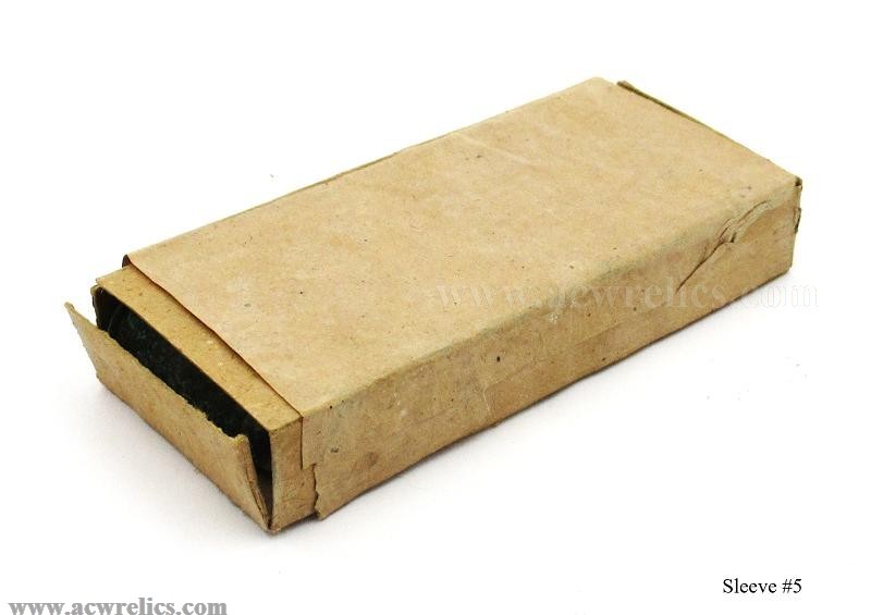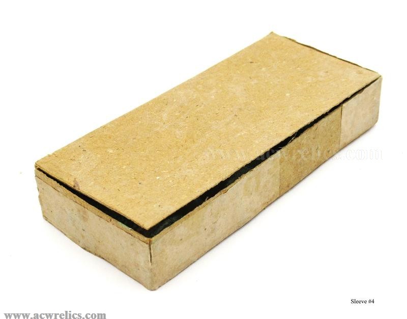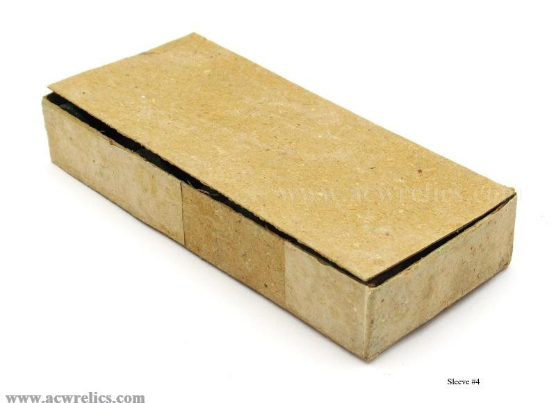 Sleeve #4: Full and correct. Possibly produced by a different maker based on construction style. Pasteboard box with a top-opening lid, held together by a glued paper side band.
