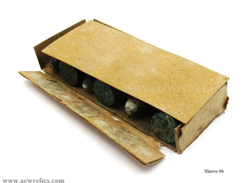 Sleeve #6: Partial sleeve with six cartridges. The top is removable, and the remainder is held together by the outer wrapper. All side seams are split.