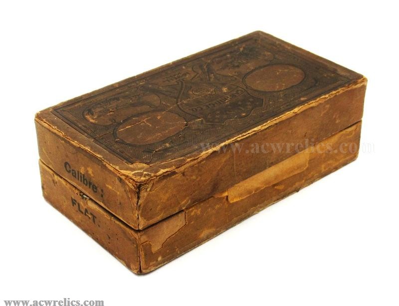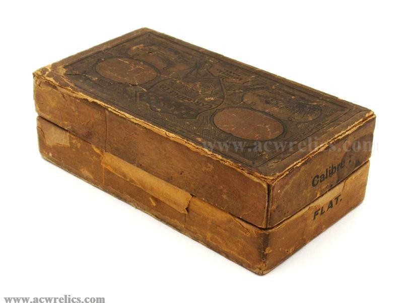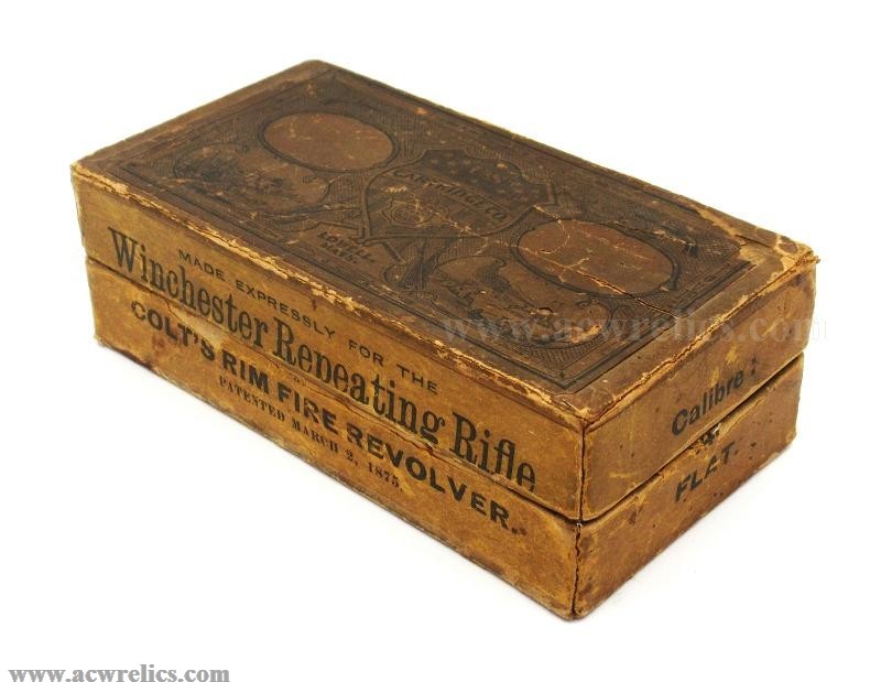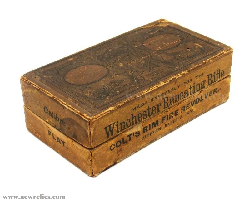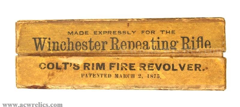 An attractive and seldom-seen example that would make an excellent addition to any Henry or early Winchester cartridge collection. This box displays beautifully alongside a Henry rifle, Model 1866 Winchester, or Colt Open Top revolver—a classic artifact of the American West and the rimfire era.